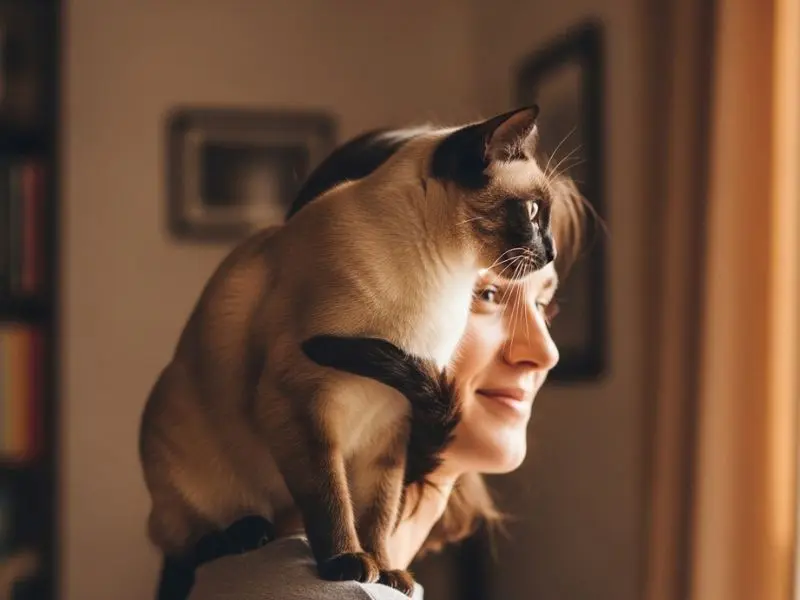 Siameses costumam estabelecer vínculo especialmente intenso com uma pessoa específica da casa. Essa pessoa vira o centro do universo do gato — que vai segui-la pelos cômodos, querer dormir junto, reclamar quando ela sai e comemorar de forma exagerada quando ela volta.